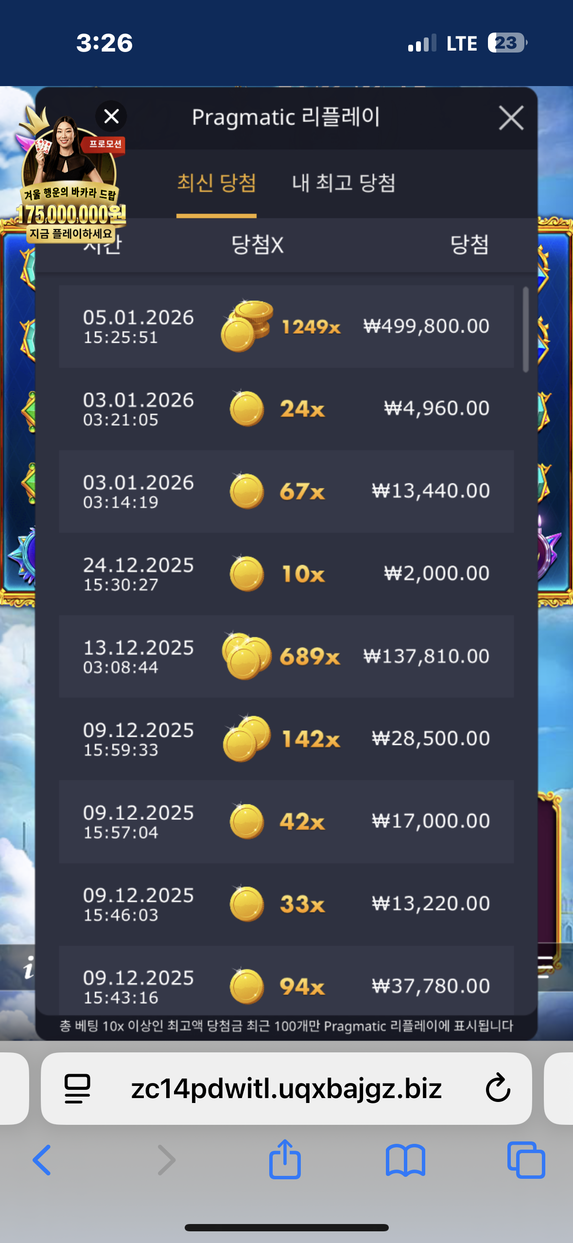 잭팟이 터진 순간의 스크린샷 및 링크를 첨부해주세요.
