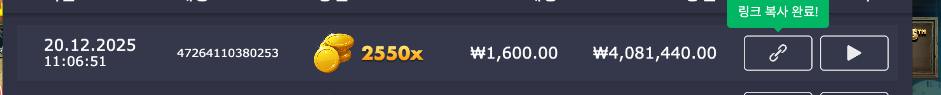 잭팟이 터진 순간의 스크린샷 및 링크를 첨부해주세요.
