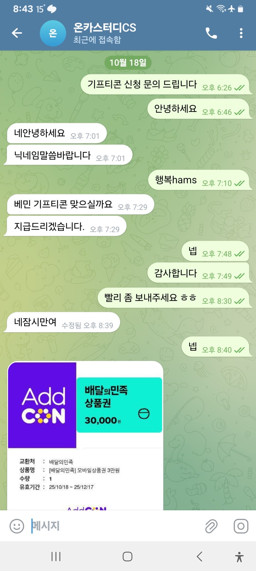 배민3만 기프티콘 수령.잘 먹을께요.ㄱㅅㄱㅅ 작성자 정보 행복hams쪽지보내기 자기소개 이름으로 검색쪽지보내기 자기소개 이름으로 검색 작성 작성일 2025.10.18 20:46 컨텐츠 정보 516 조회 8 댓글 2 추천 목록 본문 관리자님 땡큐 2 추천 관련자료 댓글 8 조련사님의 댓글 조련사쪽지보내기 자기소개 이름으로 검색쪽지보내기 자기소개 이름으로 검색 작성일 2025.10.18 20:48 저녁 맛있는걸루 드시죠~ 저녁 맛있는걸루 드시죠~ 행복hams님의 댓글의 댓글 행복hams쪽지보내기 자기소개 이름으로 검색쪽지보내기 자기소개 이름으로 검색 작성일 2025.10.18 20:48 고마워요 감사합니다 고마워요 감사합니다 시크릿썸머님의 댓글 시크릿썸머쪽지보내기 자기소개 이름으로 검색쪽지보내기 자기소개 이름으로 검색 작성일 2025.10.18 20:50 오홍 나도 배민포 바까야겠드아ㅋㅋ 오홍 나도 배민포 바까야겠드아ㅋㅋ 행복hams님의 댓글의 댓글 행복hams쪽지보내기 자기소개 이름으로 검색쪽지보내기 자기소개 이름으로 검색 작성일 2025.10.18 20:51 빨리 하세요 빨리 하세요 dalio님의 댓글 dalio쪽지보내기 자기소개 이름으로 검색쪽지보내기 자기소개 이름으로 검색 작성일 2025.10.18 20:50 와우 포인트 모아서 바꾼건가요? 와우 포인트 모아서 바꾼건가요? 행복hams님의 댓글의 댓글 행복hams쪽지보내기 자기소개 이름으로 검색쪽지보내기 자기소개 이름으로 검색 작성일 2025.10.18 20:51 네.맞아요.빨리 해보세요 네.맞아요.빨리 해보세요 하늘채님의 댓글 하늘채쪽지보내기 자기소개 이름으로 검색쪽지보내기 자기소개 이름으로 검색 작성일 2025.10.18 21:37 잘드세요. 잘드세요. 행복hams님의 댓글의 댓글 행복hams쪽지보내기 자기소개 이름으로 검색쪽지보내기 자기소개 이름으로 검색 작성일 2025.10.18 21:37 감사합니다 감사합니다 로그인한 회원만 댓글 등록이 가능합니다. 목록