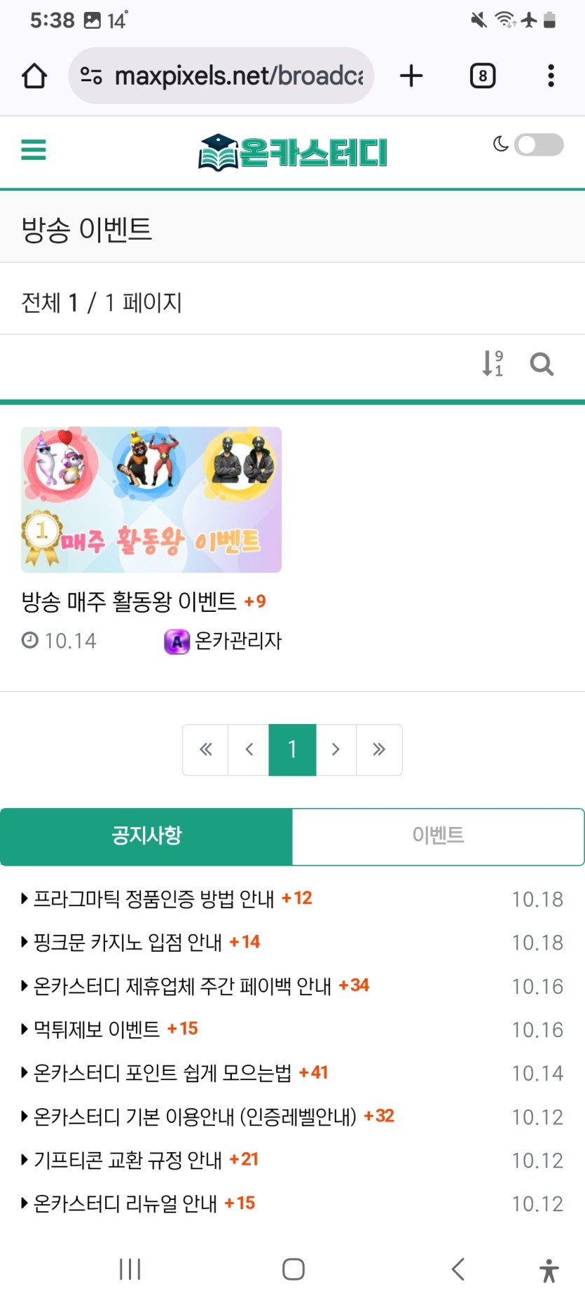 매주 방송 활동왕 이벤트 도전 하세요 ~ 작성자 정보 행복hams쪽지보내기 자기소개 이름으로 검색쪽지보내기 자기소개 이름으로 검색 작성 작성일 2025.10.21 17:39 컨텐츠 정보 797 조회 6 댓글 5 추천 목록 본문 포이트 줍니다~ 5 추천 관련자료 댓글 6 조련사님의 댓글 조련사쪽지보내기 자기소개 이름으로 검색쪽지보내기 자기소개 이름으로 검색 작성일 2025.10.21 17:41 샤샷 활동 마니 해야징 샤샷 활동 마니 해야징 행복hams님의 댓글의 댓글 행복hams쪽지보내기 자기소개 이름으로 검색쪽지보내기 자기소개 이름으로 검색 작성일 2025.10.21 17:42 좋아요 ㅎㅎ 좋아요 ㅎㅎ 노가다님의 댓글 노가다쪽지보내기 자기소개 이름으로 검색쪽지보내기 자기소개 이름으로 검색 작성일 2025.10.21 17:42 좋은정보 감사합니다 44 럭키포인트 당첨! 좋은정보 감사합니다 행복hams님의 댓글의 댓글 행복hams쪽지보내기 자기소개 이름으로 검색쪽지보내기 자기소개 이름으로 검색 작성일 2025.10.21 17:43 고마워요 ㅋㅋ 고마워요 ㅋㅋ 하늘채님의 댓글 하늘채쪽지보내기 자기소개 이름으로 검색쪽지보내기 자기소개 이름으로 검색 작성일 2025.10.21 18:04 선정되기힘들어요 16 럭키포인트 당첨! 선정되기힘들어요 행복hams님의 댓글의 댓글 행복hams쪽지보내기 자기소개 이름으로 검색쪽지보내기 자기소개 이름으로 검색 작성일 2025.10.21 18:30 열심히 하면 좋은 일 생기지 않을까요 열심히 하면 좋은 일 생기지 않을까요 로그인한 회원만 댓글 등록이 가능합니다. 목록
