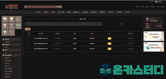 밤비 가입해서 50만원씩 충전해서 쓰다가 스포츠 롤링 200%돌려서