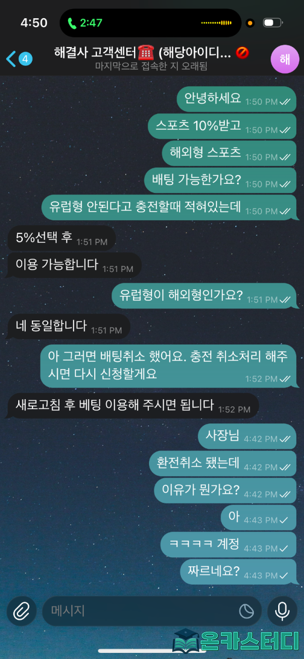 좋게 돈 내주고 끝낼 생각 있으면 차단 풀고 연락줘라 해결사 안되면 할 수 있는 선에서 끝까지 해볼게 내가 , 오늘 먹튀 당하기 전에도 최근에 먹글 몇 개 올라와있더라고요 먹튀 당하고나서 알았습니다 오늘 충전금액 20 20 20 50 30만 했고 140만 손실이고 환전 한 번도 못 했는데 마지막 30만 충전 미니게임 6연승하고 150 환전 누르니 바로 환전취소되고 텔레문의 남기니까 답변도 안하고 바로 텔레 차단 당했습니다 다른 텔로 보내도 동일하게 차단 개좋구멍가게 사이트입니다 절대 이용하지마시길 최근 먹글 저 말고도 피해자 많습니다.