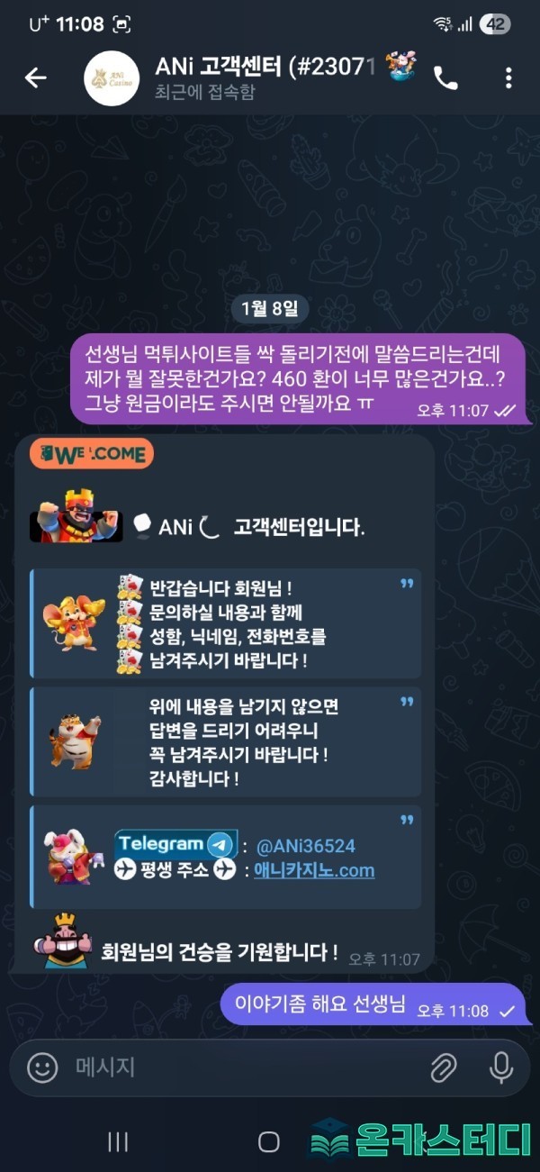 고객센터 텔레그램 전부 답장이나 우기기도 없이 바로 짤이네요.